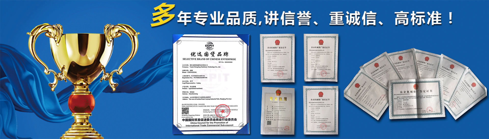 煙臺成峰機械科技有限公司,成立于2010年4月,是農林機械專業生產廠 家。十余年專注果園管理機械、大棚機械的研發、生產與銷售。產品暢 銷全國三十一個省市、自治區,60%的產品出口歐、美、日、韓等多個國家。高新技術企業,有經驗豐富的產品研發團隊,有十款產品通過國家農機推廣鑒定,享有國家農機補貼。公司現有激光切割機械、機器人焊 接、數控加工設備、表面處理設備數十臺,具備萬臺以上農林機械的生 產能力。目前我們與山東農業大學,山東科技大學等多所高校達成產學研合作, 與山東農機研究院、農科院等多家科研單位達成產品研發合作,為傳統農機的智能化賦能插上翅膀。我們遵循誠信、創新、合作、共贏的經營理念,在可持續發展的道路上 穩步前行。 查看詳情>